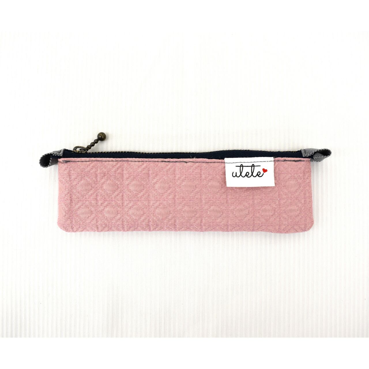 ふんわり柔らかなピンクの布で作った優しい印象のペンポーチ。