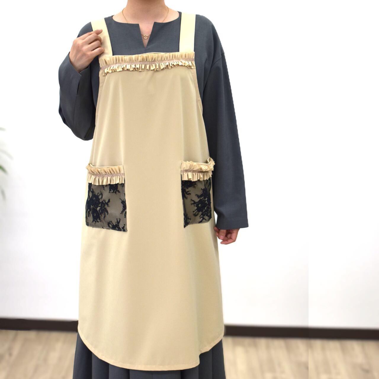 フリルとレースのアクセントが、さりげなく華やかさを添えてくれるから、いつもの家事時間がちょっと楽しくなります!