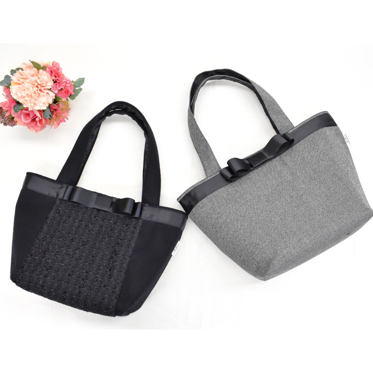冬の街にそっと映える、ラメ入りツイードの新作トートバッグが完成しました。