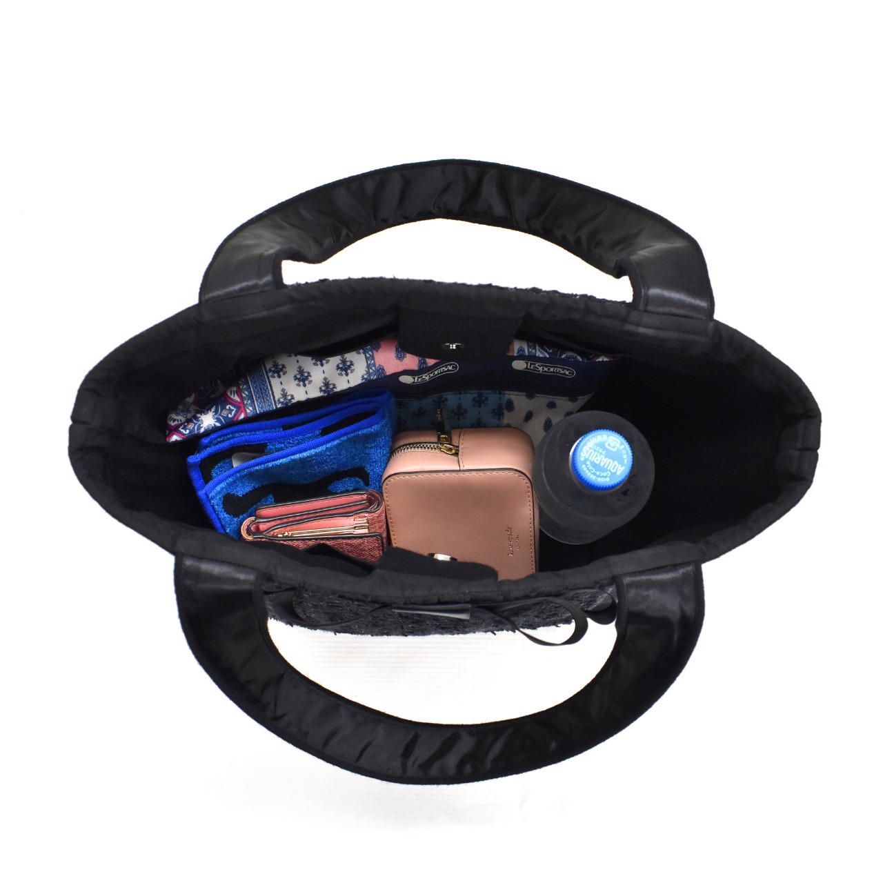 マチを広くとったたっぷりサイズで、お弁当箱やポーチ、手帳などもすっきり収納可能。