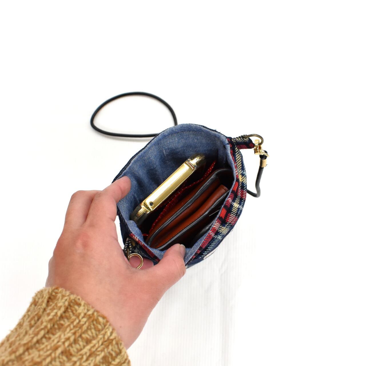 スマホ・鍵・ハンカチに加え、長財布も入る実用的なサイズ感。